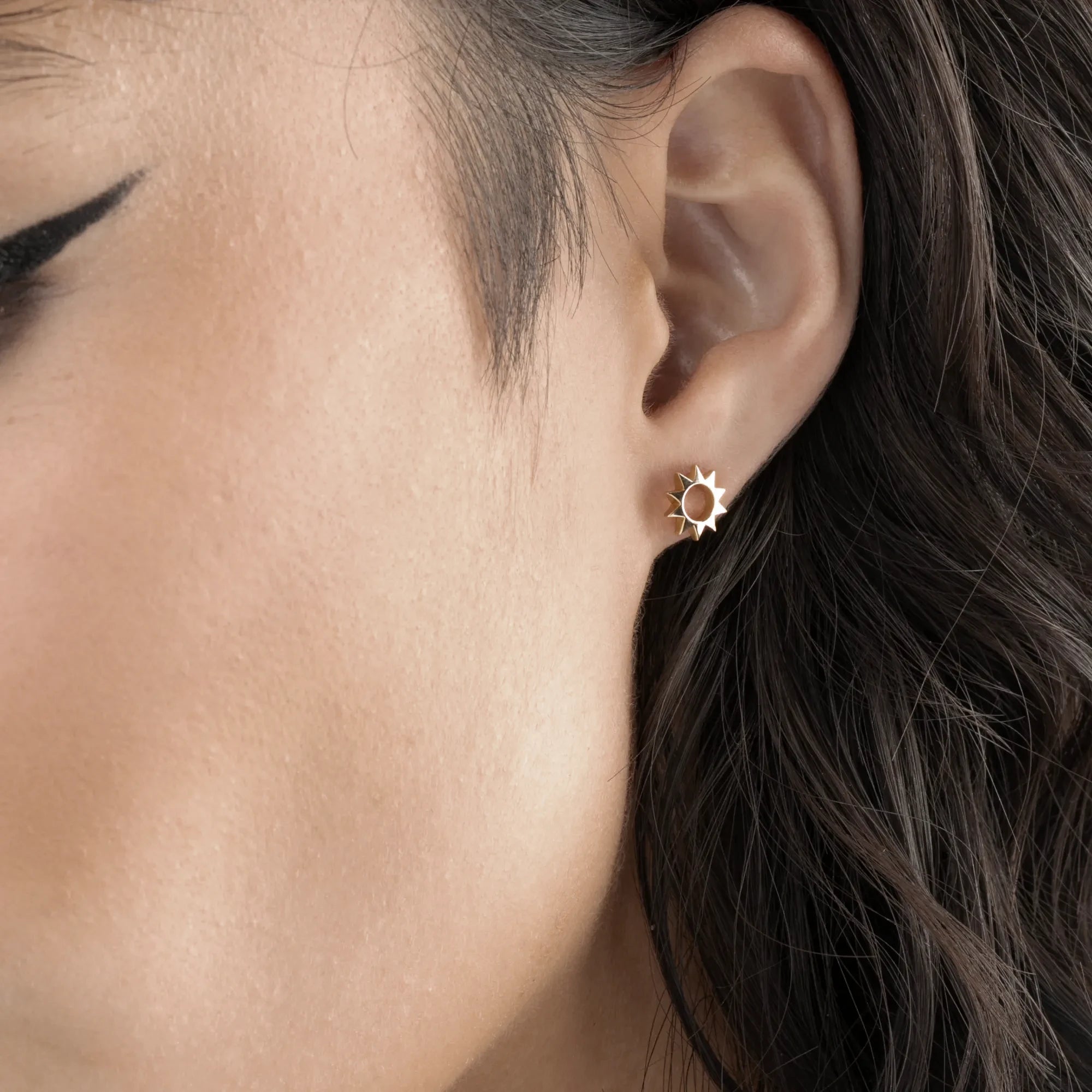 Release your inner fireball with our Ray sun studs. Crafted to capture your unstoppable force, these solar studs are a reminder that dimming your shine was never an option. Handcrafted in recycled solid 14k gold.