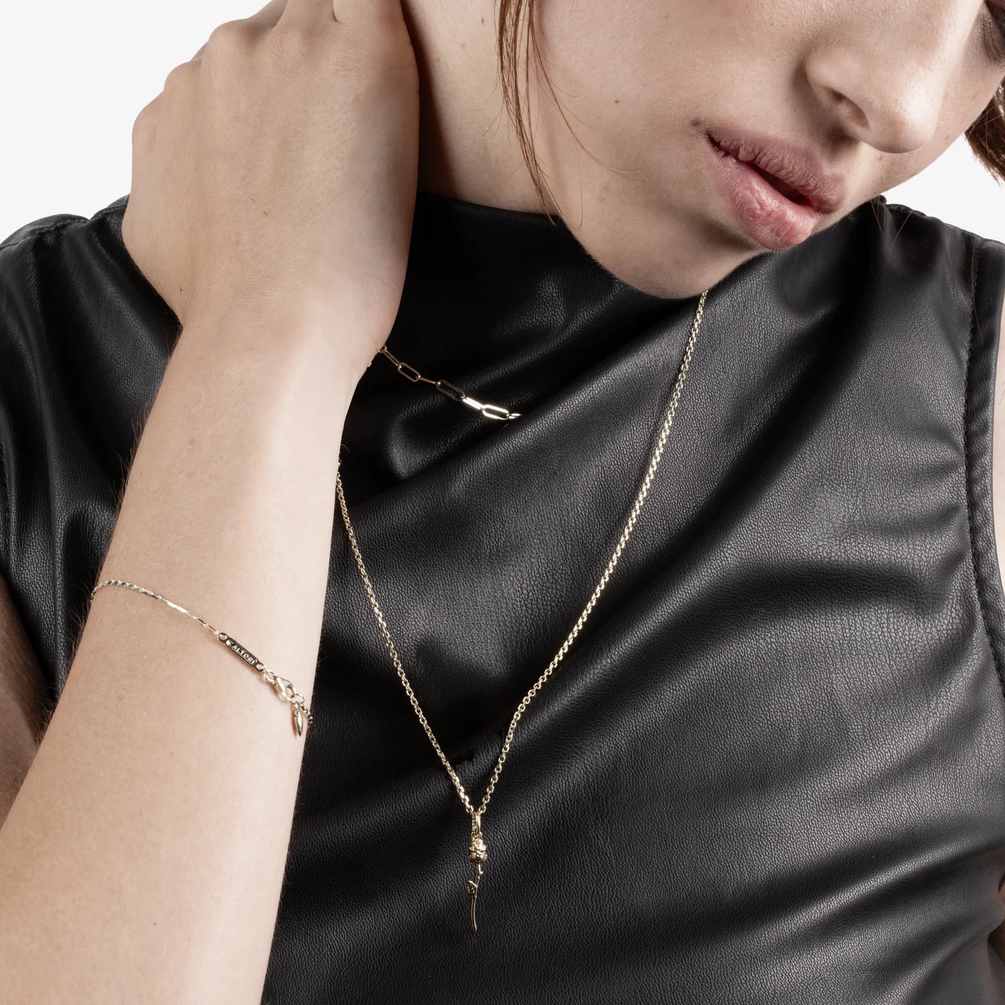 Solid gold never tarnishes, and our 14k Gold pieces are no exception, maintaining their warm, lustrous finish with minimal maintenance. While the surface may dull slightly from everyday wear, a quick polish with a soft jewelry cloth will instantly restore its shine.